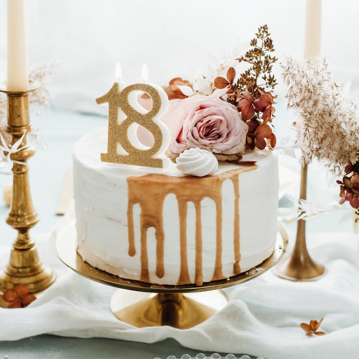 Leuke verjaardagskaars in de kleur goud met glitters. Met deze kaars maak je jouw taart helemaal af en kan het feest beginnen!