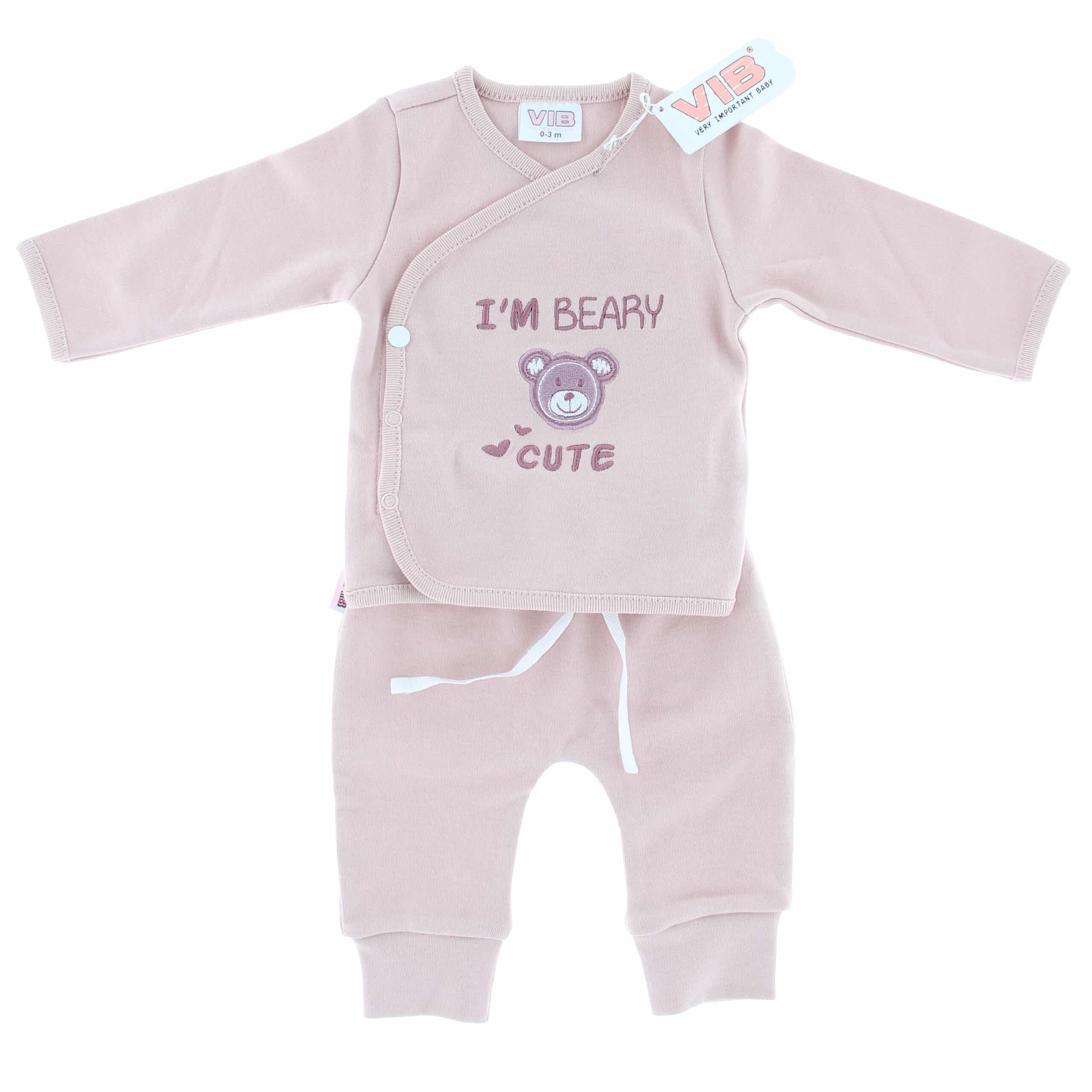 Dit mooie 2-delig setje broek+T-shirt ‘I’M BEARY CUTE’ rose smoke (0-3 m) van het merk VIB (Very Important Baby) is een aanwinst om cadeau te doen of om natuurlijk gewoon zelf te gebruiken.