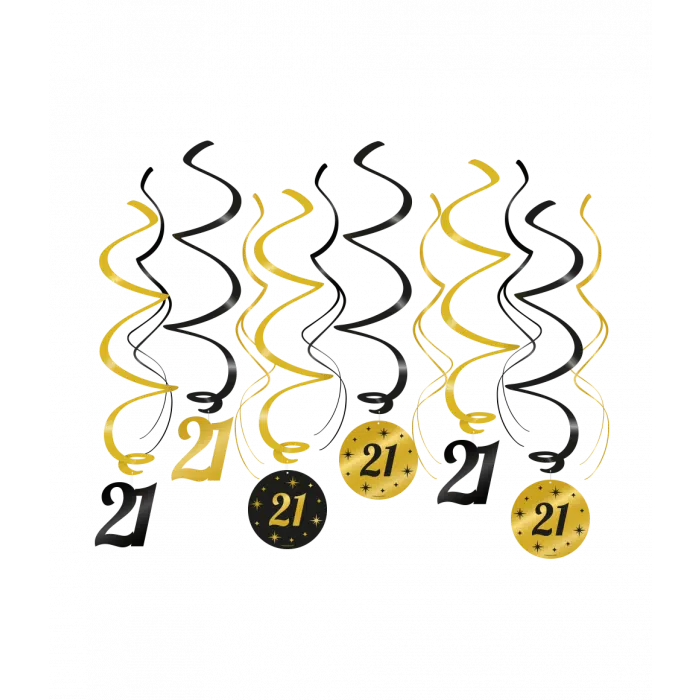 Een luxe feestje kan niet zonder deze black/gold classy party swirls en deze met opdruk 21 maakt het feestje echt af! Deze unieke zwart gouden swirls zijn gemaakt van plastic en papier en zijn ongeveer 70 centimeter lang. Om het feestje af te maken kunt u er de classy party balloons, hanging decorations en flag banners er direct bij bestellen!