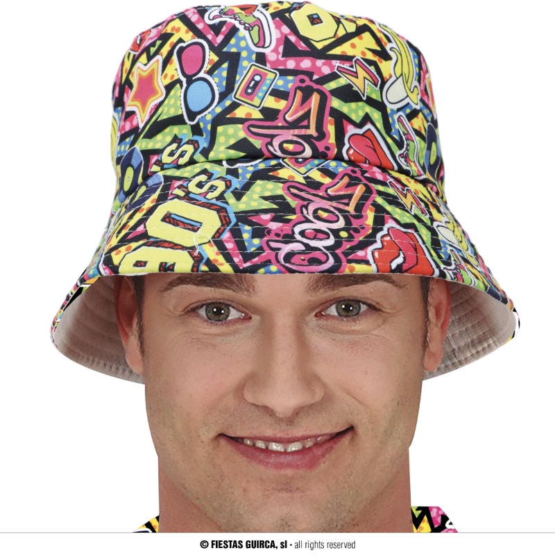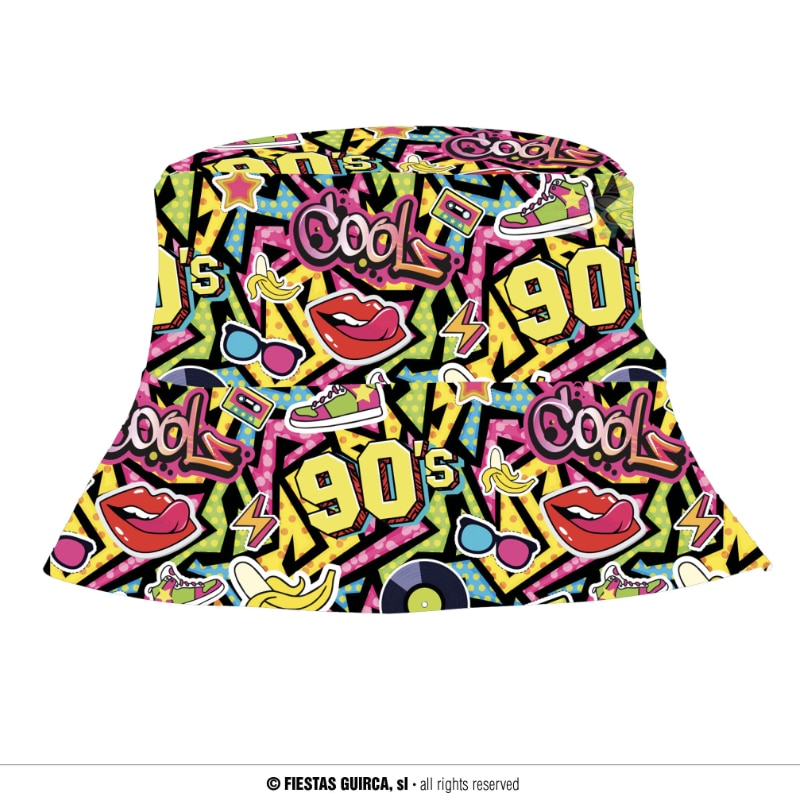 De 90’s zijn weer helemaal hot! De muziek was leuk en afwisselend, de drukte van nu doet ons weer verlangen naar sommige dingen uit de jaren 90. Dit 90’s vissershoed neon past door de felle print goed bij andere kleding uit de jaren 90.