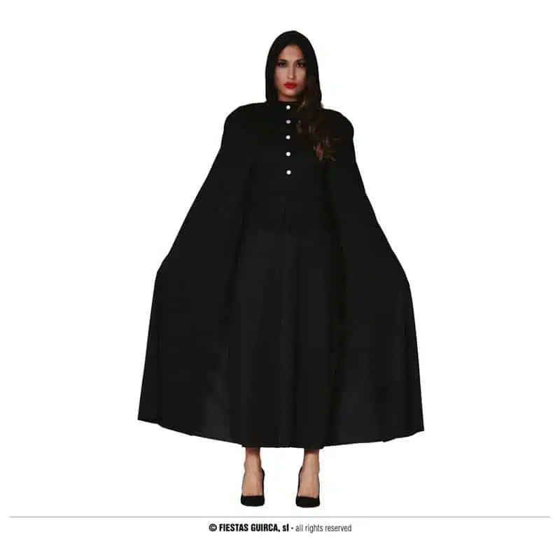 Een vampier kan niet zonder een cape, want dat maakt de look extra spannend. En met deze prachtige zwarte cape met Cape met hoodie zie je er al bijzonder mysterieus uit. Dit is het perfecte accessoire voor vrouwelijke vampieren tijdens Halloween.