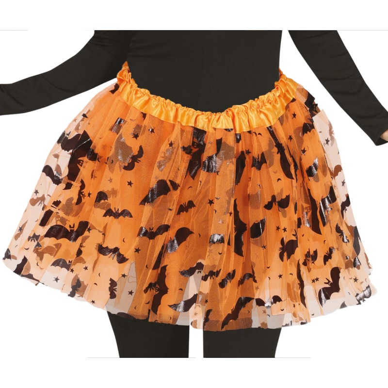 Dames tutu oranje/ zwart vleermuizen – 40 cm