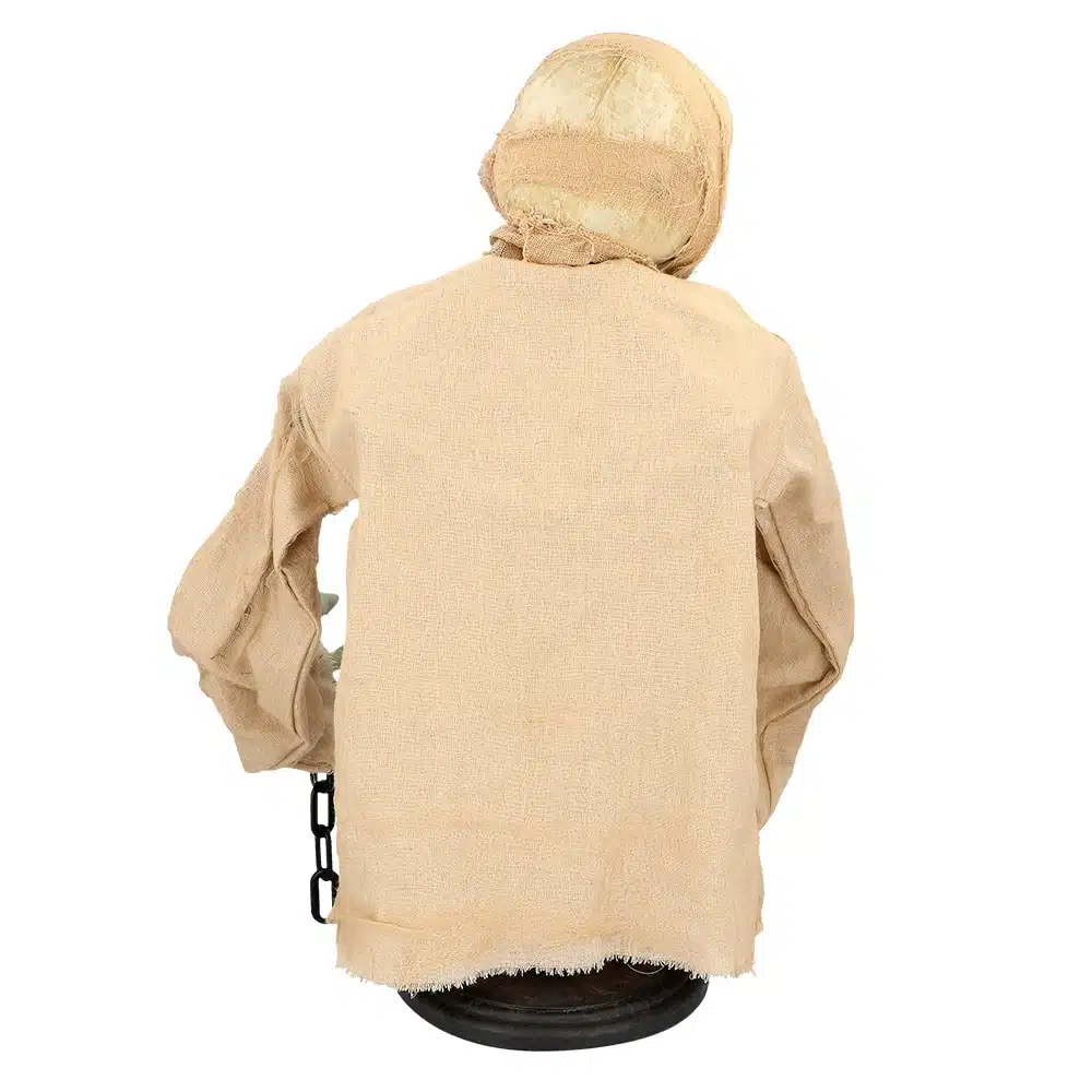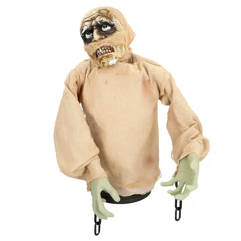 Deze schreeuwende mummie laat iedereen schrikken die te dichtbij de snoep of snacks komen. Deze leuke staande halloween decoratie maak griezelige geluiden, beweegt zijn lichaam en armen en heeft rode oplichtende ogen. Top als versiering voor in een spookhuis of op de snack tafel tijdens een halloween feest.