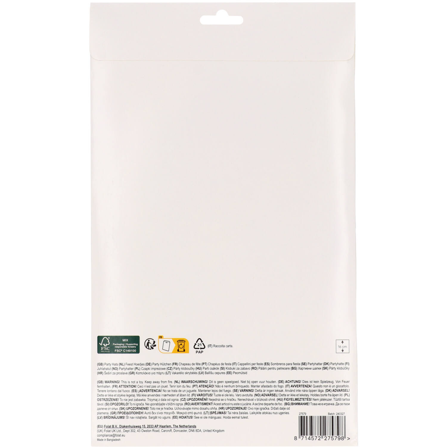 Kopbal! Deze leuke feesthoedjes – fantastic football zijn niet handig om mee te koppen, maar wel leuk voor je voetbalfeestje. Ze worden per 6 stuks geleverd en zijn gemaakt van papier. Deze vrolijke feesthoedjes zijn 16 cm hoog. Er zijn twee designs: een donkere met een voetballer en een lichte met een voetballer. De hoedjes zijn plat verpakt en kunnen gemakkelijk tot hoedje worden gevouwen. Met de elastiekjes blijven de hoedjes goed op het hoofd zitten.