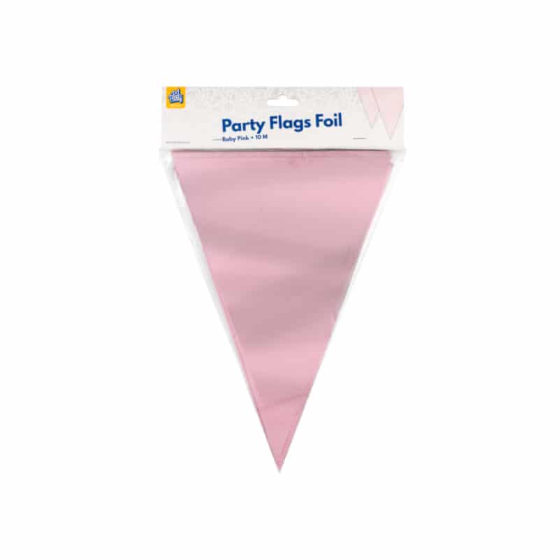 Deze folie vlaggenlijn baby roze – 10 meter is niet alleen leuk om te gebruiken met een babyshower of een geboorte, maar ook leuk met een verjaardag of themafeest. De vlaggenlijn is gemaakt van folie en is 10 meter lang, de vlaggen zijn 30 cm breed.