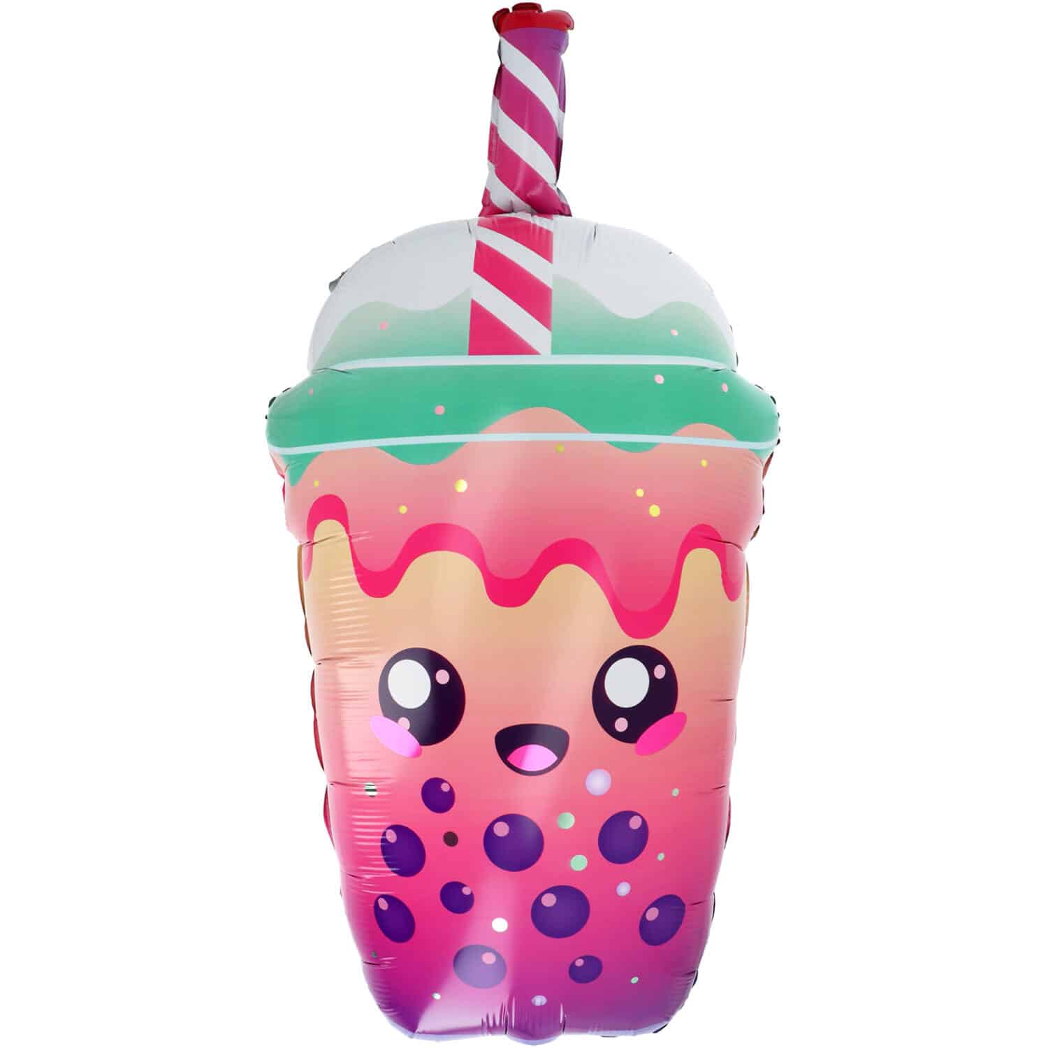 Deze schattige folieballon bubbelthee mag niet ontbreken bij een verjaardag, kawaii party of een ander themafeest. Kawaii is een essentieel onderdeel van de Japanse cultuur en draait volledig om schattigheid, zachtheid en speelse esthetiek. Het woord “kawaii” betekent letterlijk “schattig” of “lief” en is diep verweven in het dagelijks leven in Japan. Kawaii brengt een gevoel van vrolijkheid en comfort in alles wat het raakt en daardoor deze unieke Japanse stijl tot leven brengen. Denk aan zachte pastelkleuren, lieve gezichtjes, ronde vormen en speelse designs die direct een glimlach op je gezicht toveren. Kawaii is meer dan alleen een trend; het is een manier om positiviteit en creativiteit toe te voegen aan je dagelijkse routine. Een folieballon in de vorm van een beker Bubble Tea mét vrolijk gezichtje. Echt super cute! De bubble tea-folieballon is 38 breed en 60 cm hoog zonder rietje, met rietje is de hoogte 76 cm. De folieballon is geschikt voor helium of lucht en kan gemakkelijk worden opgehangen aan de hangtab(s). Een hele vrolijke manier om de feestsfeer erin te krijgen. Let op de ballon wordt zonder helium verzonden.