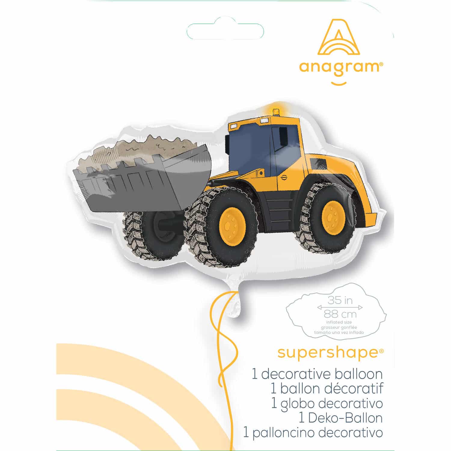 Deze stoere folieballon graafmachine mag niet ontbreken bij een verjaardag, thema bouwplaats en/ of een ander themafeest. De shape construction excevator folieballon is 55 x 33 cm groot. De gele graafmachine heeft zijn schep gevuld  met zand. De folieballon is geschikt voor helium of lucht en kan gemakkelijk worden opgehangen aan de hangtab(s).  Let op de ballon wordt zonder helium verzonden.
