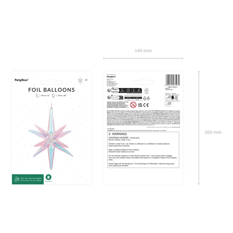Folieballon Sterren 3D iriserend 70 cm bestaat een ster met 10 punten.