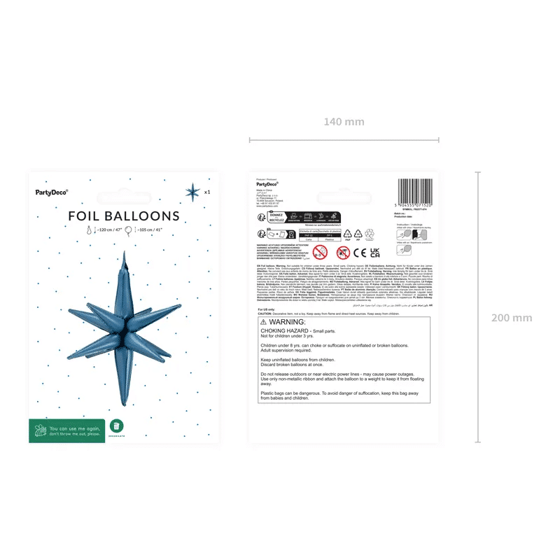 Folieballon Sterren 3D navy blue 105 cm bestaat een ster met 10 punten.