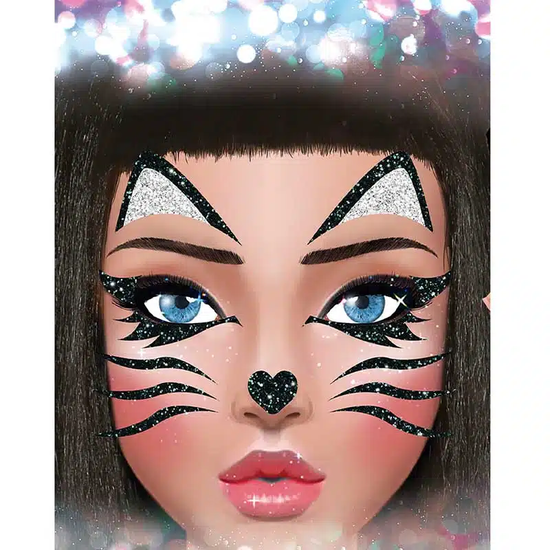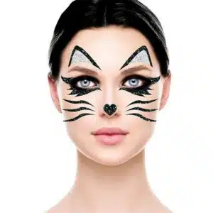 Deze gezicht decoratie is gemakkelijk aan te brengen omdat deze zelf plakt.