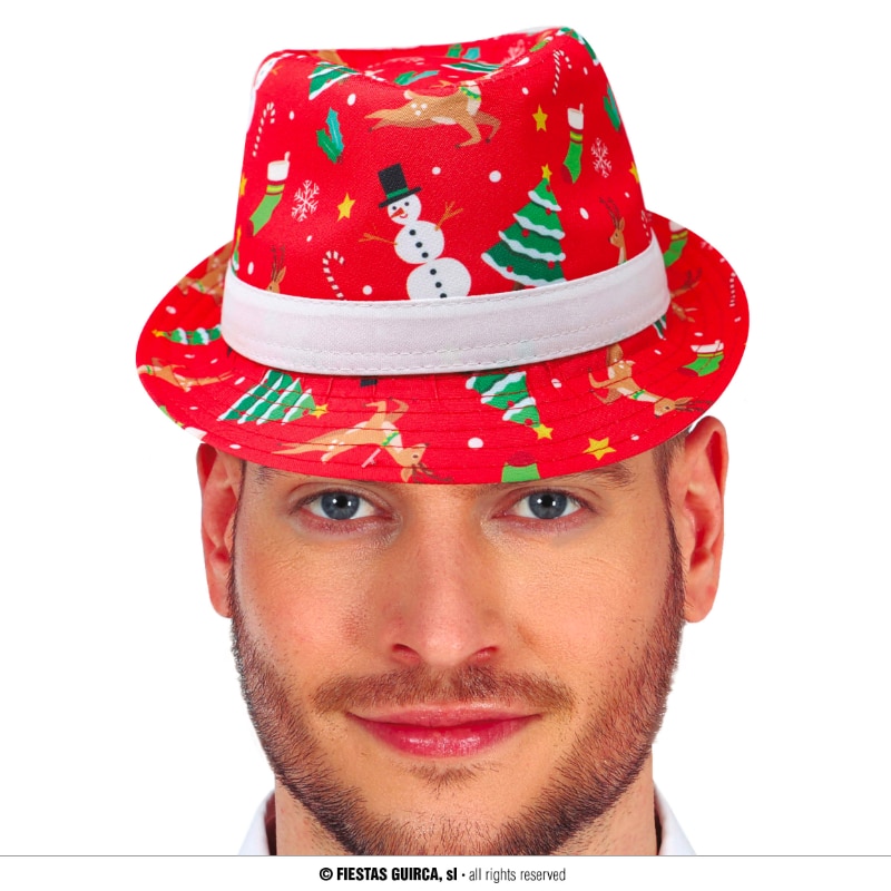Vind je die foute Kersttruien een beetje passe? Zet dan deze gleufhoed kerst rood op het is een toffe accessoire om het kerstfeest om te dragen i.p.v. een foute kersttrui of als je voor echt fout wilt gaan in combinatie met een foute kersttrui. Deze rode gangster hoed is voorzien van allerlei printjes zoals sneeuwpoppen en kerstbomen.