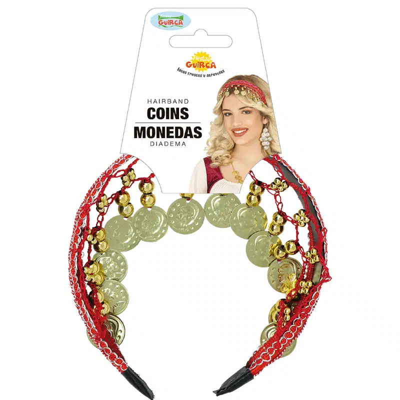 Je hebt een gypsy feest, maar je gaat het liefst voor eigen kleding met wat accessoires? Dan mag deze gypsy tiara niet ontbreken. De rode diadeem is voorzien van kleine gouden kraaltjes en muntjes. De tiara is gemaakt van pvc, polyester en metaal. Als buikdanseres is deze hoofdband leuk om te gebruiken, zeker in combinatie met de gypsy buikdans sjaal.
