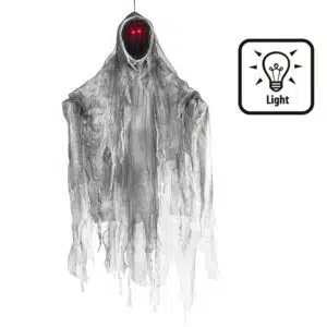 Let op! Je denkt misschien dat dit spook je niet in de gaten houdt maar niks is minder waar. Voor je het weet verschijnen zijn enge rode ogen en bezorgt hij iedereen nachtmerries. Deze hangende gezichtsloze geest met licht functie is perfect als Halloween versiering voor in huis of in een spookhuis.