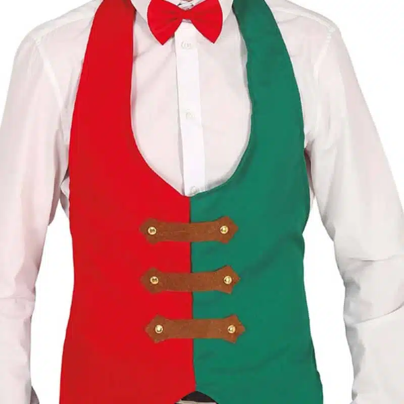 Je hebt deze kerst een belangrijke taak als het hulpje van de kerstman. Deze heren gilet elf is dan zeer geschikt om je snel om te toveren. Het gilet heeft 2 kleuren – rood en groen – welke leuk staat onder een colbertje en kun je aan de achterkant vast strikken. Hierdoor is het geschikt voor meerdere maten. Let op het giletje wordt exclusief strik en muts geleverd.