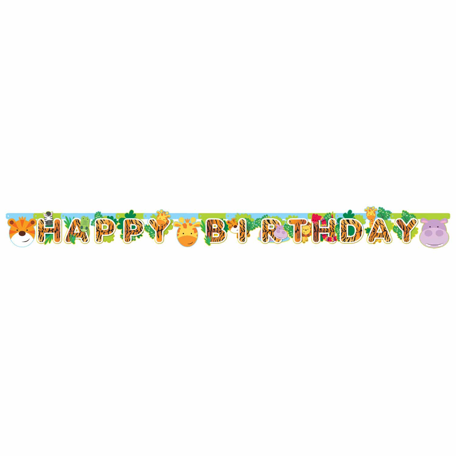 Met deze leuke jungle slinger maak je jouw kinderfeestje compleet! Op de slinger staan de coolste dieren uit de jungle afgebeeld. De slinger heeft een formaat van 170 x 15 cm en is per stuk verpakt.