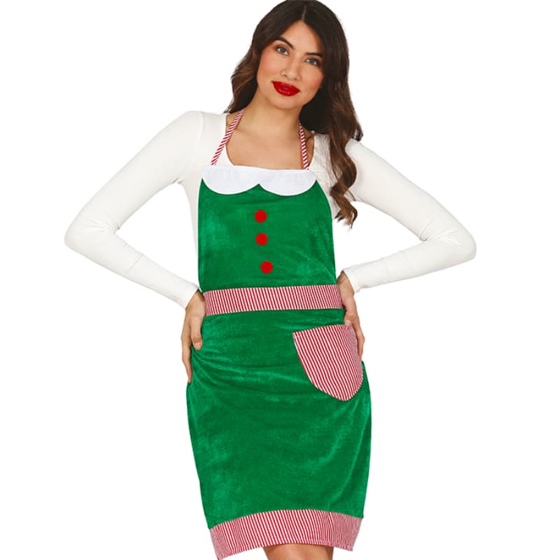 Ook de kerstvrouw kan deze kerst wel de hulp van een kerstelf gebruiken. In de keuken kan het schort kerstelf – one size handig zijn tijdens het kokkerellen. Ook handig om je snel te verkleden als kerstelf.