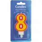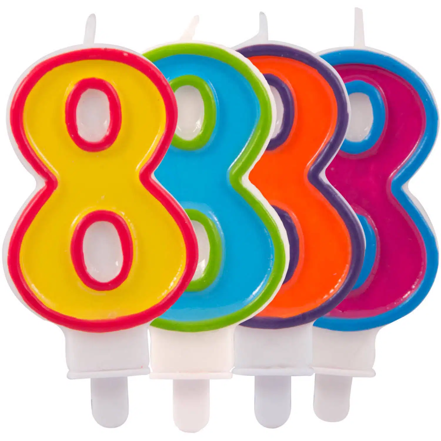 Deze vrolijke leeftijd kaars heeft felle kleuren. Elk kaarsje is ongeveer 9 cm groot en ze worden per 1 stuks geleverd. De kaars cijfer 8 in vrolijke kleuren is gemaakt van wax. Helaas is het niet mogelijk om een kleur door te geven.