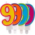 Deze vrolijke leeftijd kaars heeft felle kleuren. Elk kaarsje is ongeveer 9 cm groot en ze worden per 1 stuks geleverd. De kaars cijfer 9 in vrolijke kleuren is gemaakt van wax. Helaas is het niet mogelijk om een kleur door te geven.