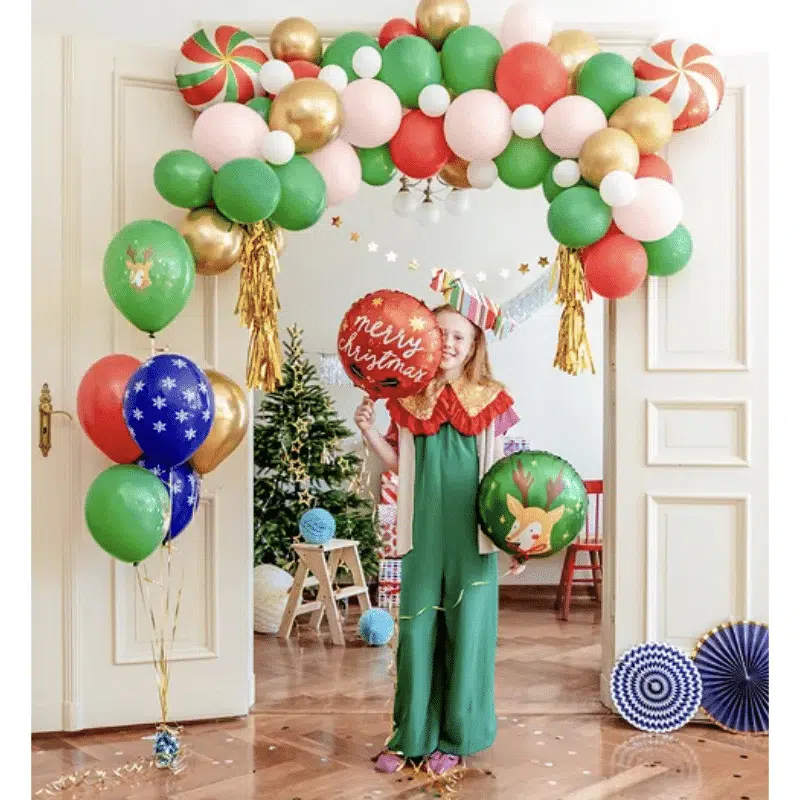 De combinatie van donker blauwe ballonnen met opdruk, groene ballonnen met opdruk, maakt het mogelijk om deze ballonnen met veel andere kleuren te combineren. Bijvoorbeeld met andere Kerstballonnen uit ons assortiment.