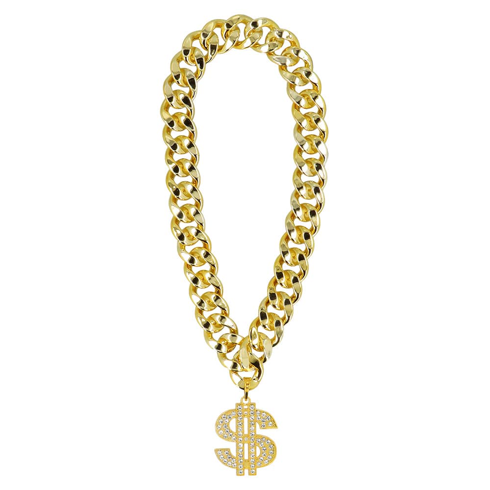 De grove schakelketting met grote dollarhanger geeft direct een luxe uitstraling. De ketting dollar Memphis is gemaakt van een lichtgewicht materiaal waardoor hij gemakkelijk de hele avond gedragen kan worden. Perfect om een outfit als gangster, pimp of hiphopper een flinke dosis attitude te geven en lekker op te vallen tijdens carnaval, themafeesten of foute party’s.