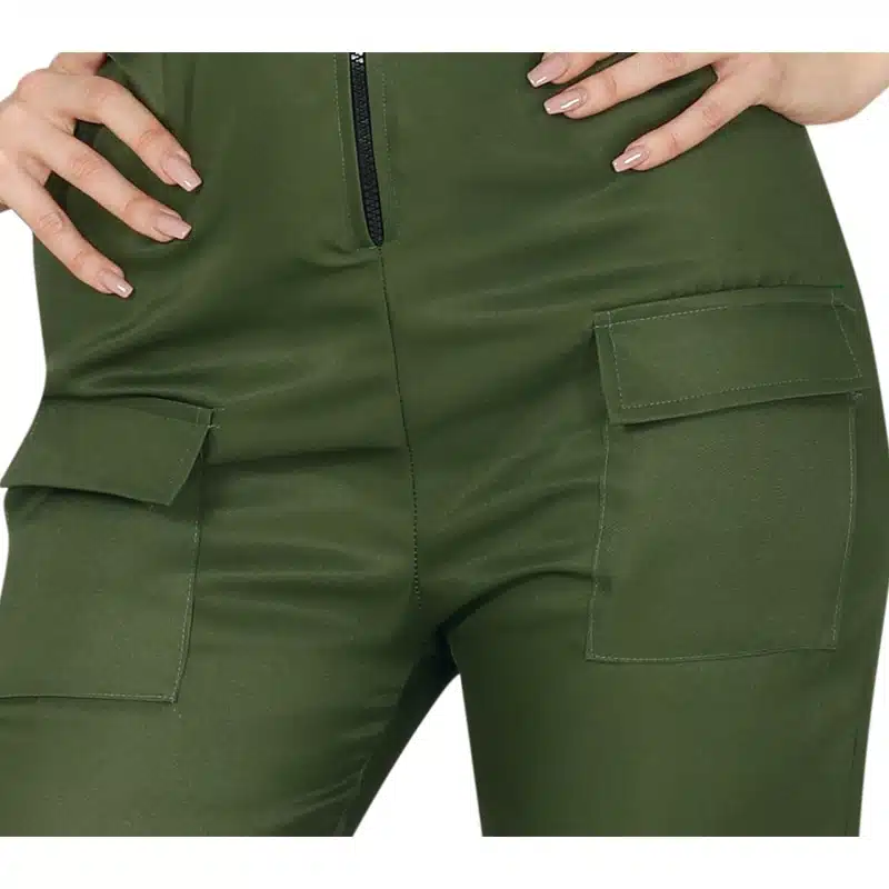 Wauw wat een sexy en toch stoer kostuum/ jumpsuit piloot groen maat L is dit. Bij de jumpsuit zit een riem aan het kostuum. De jumpsuit kan klein vallen.