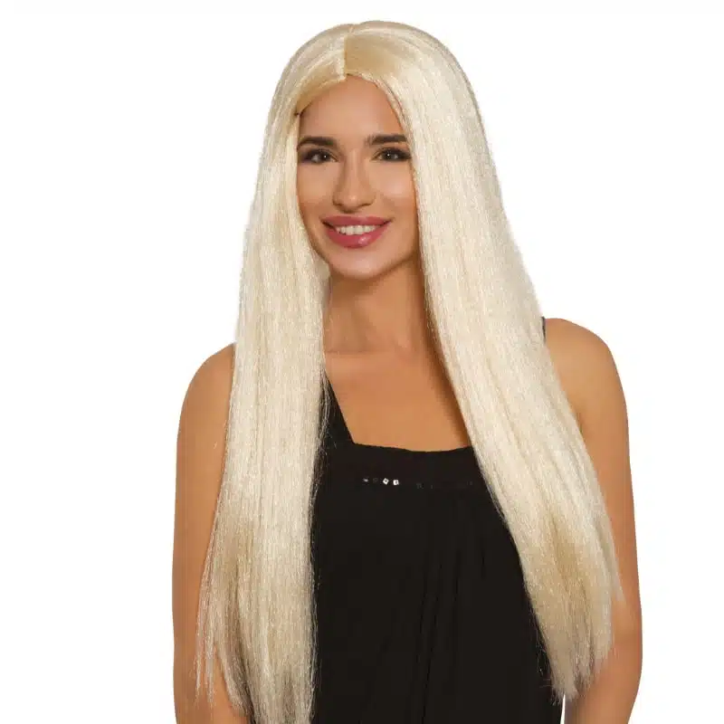 Ben je op zoek naar een pruik met lang blond haar? Dan is deze mooie pruik rood bruin haar echt iets voor jou. De lange blonde pruik is gemaakt van synthetisch haar. Deze mooie dames pruik is altijd leuk om te combineren met een mooi, leuk, grappige feestkleding.