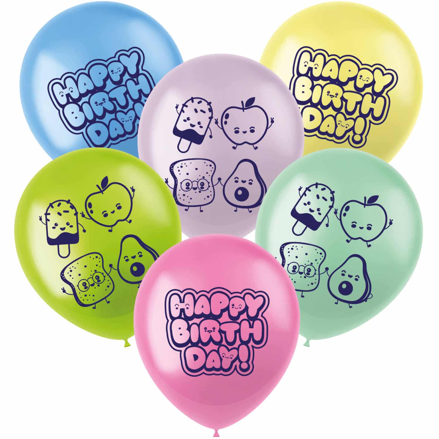 Een en al schattigheid met deze kleurrijke ballonnenset. Deze set latex ballonnen kawaii party bestaat uit 6 ballonnen: baby-geel, lichtblauw en rose met de tekst HAPPY BIRTHDAY en lila, aquamarine en lichtgroen met schattige Kawaii karakters. Dit artikel is gemaakt van latex. De ballonnen zijn gezien de opdruk geschikt om te vullen met helium, wanneer je de ballonnen een dag eerder wilt vullen met helium dan raden we aan om ze te behandelen met hi-float, beide niet meegeleverd.