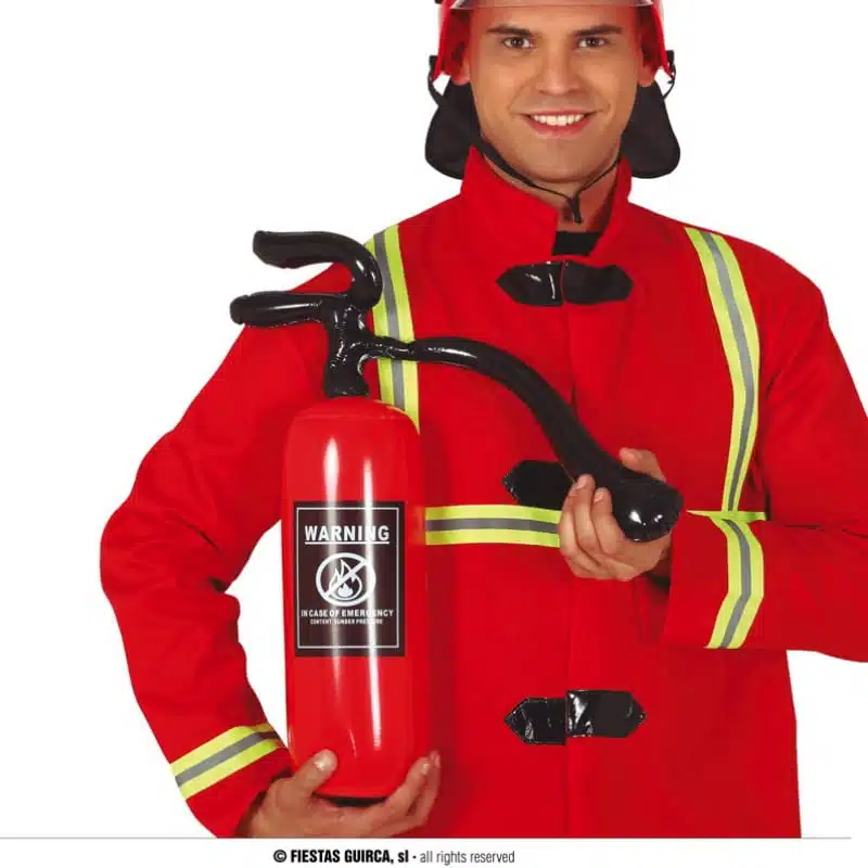Deze opblaasbare brandblusser is leuk om je brandweerman/ brandweervrouw kostuum compleet te maken met carnaval of een themafeest.