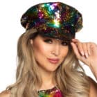 Een mooie pet met omkeerbare pailletten. Tover de hoed om tot een rainbow kapitein pet als accessoire voor een regenboog outfit voor de pride & progress parade. Toch liever de pet gebruiken voor een glitter en glamour look met een festival? Switch dan de pailletten naar de gouden kleur voor een glamour look! De kapiteinspet is geschikt voor een hoofdomtrek van 58 cm.