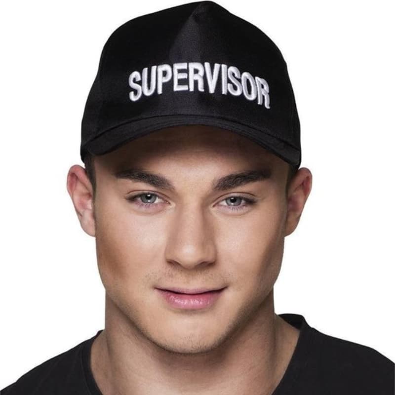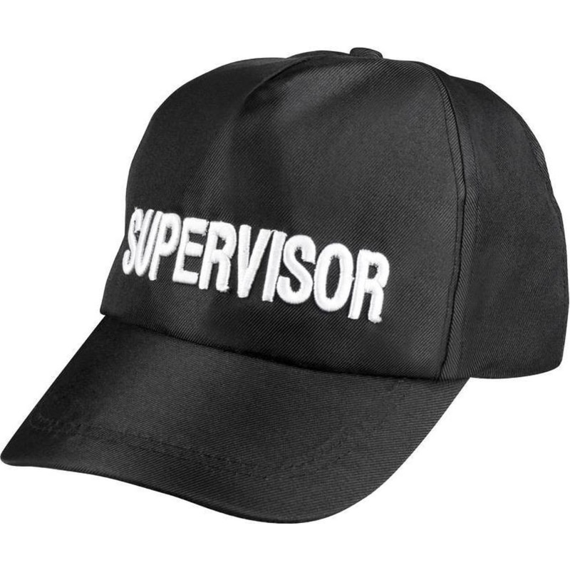 Deze zwarte supervisor pet is de perfecte soort pet voor een verkleedthema of carnaval. Hij is draagbaar door mannen en vrouwen en zal er zeker voor zorgen dat iedereen je ziet.