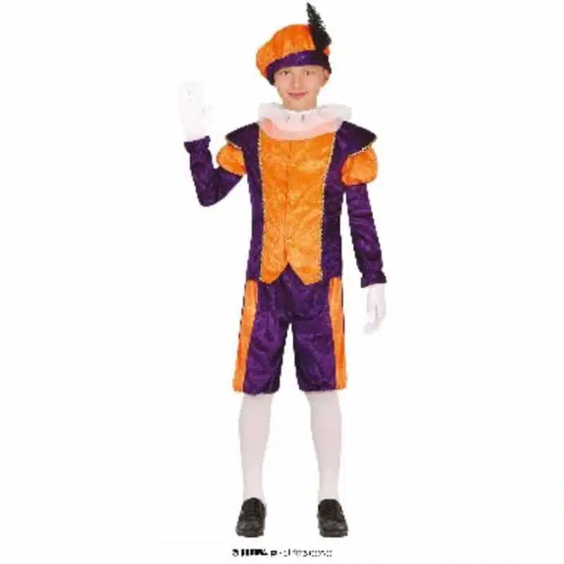 De leukste tijd van het jaar is weer in zicht… Sinterklaas en zijn pieten. Dit toffe pietenpak oranje paars mag niet ontbreken met de intocht van Sint en Piet, met de pietengym, in de verkleedhoek en met sinterklaasdag. Al met al een leuke tijd om lekker verkleed rond te lopen. Het pietenpak bestaat uit een oranje paarse blouse, broek en bijpassende baret met veer. Let op het pietenpak wordt exclusief handschoenen, maillot en pieten accessoires geleverd.