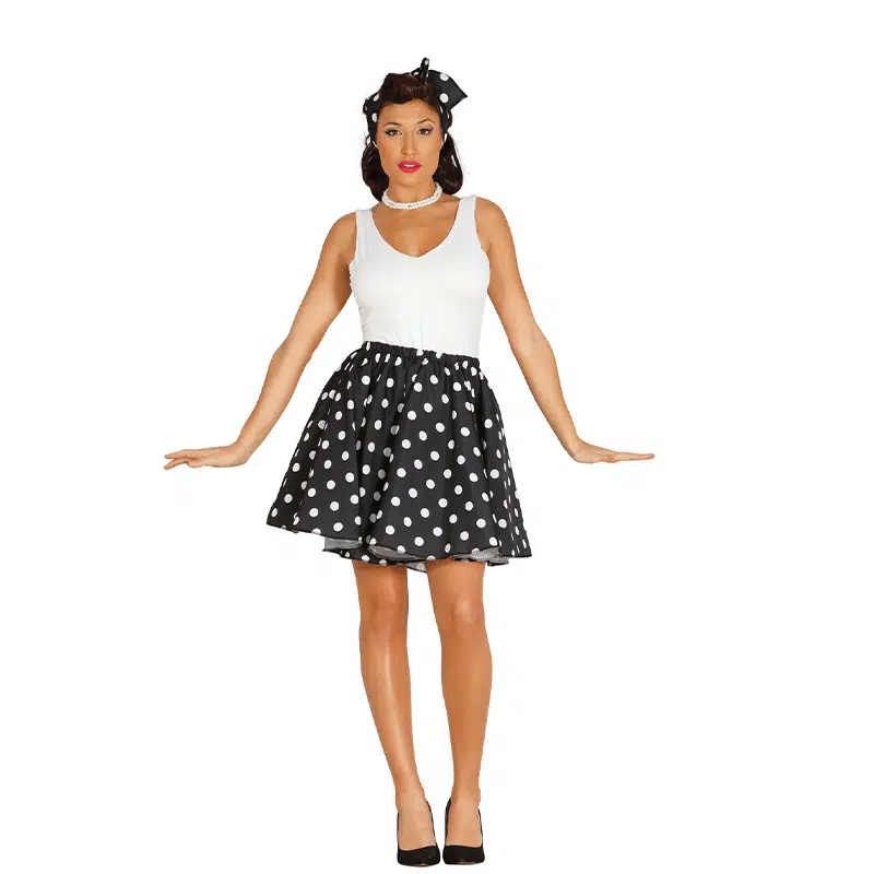 haarband, sjaal, en rok.