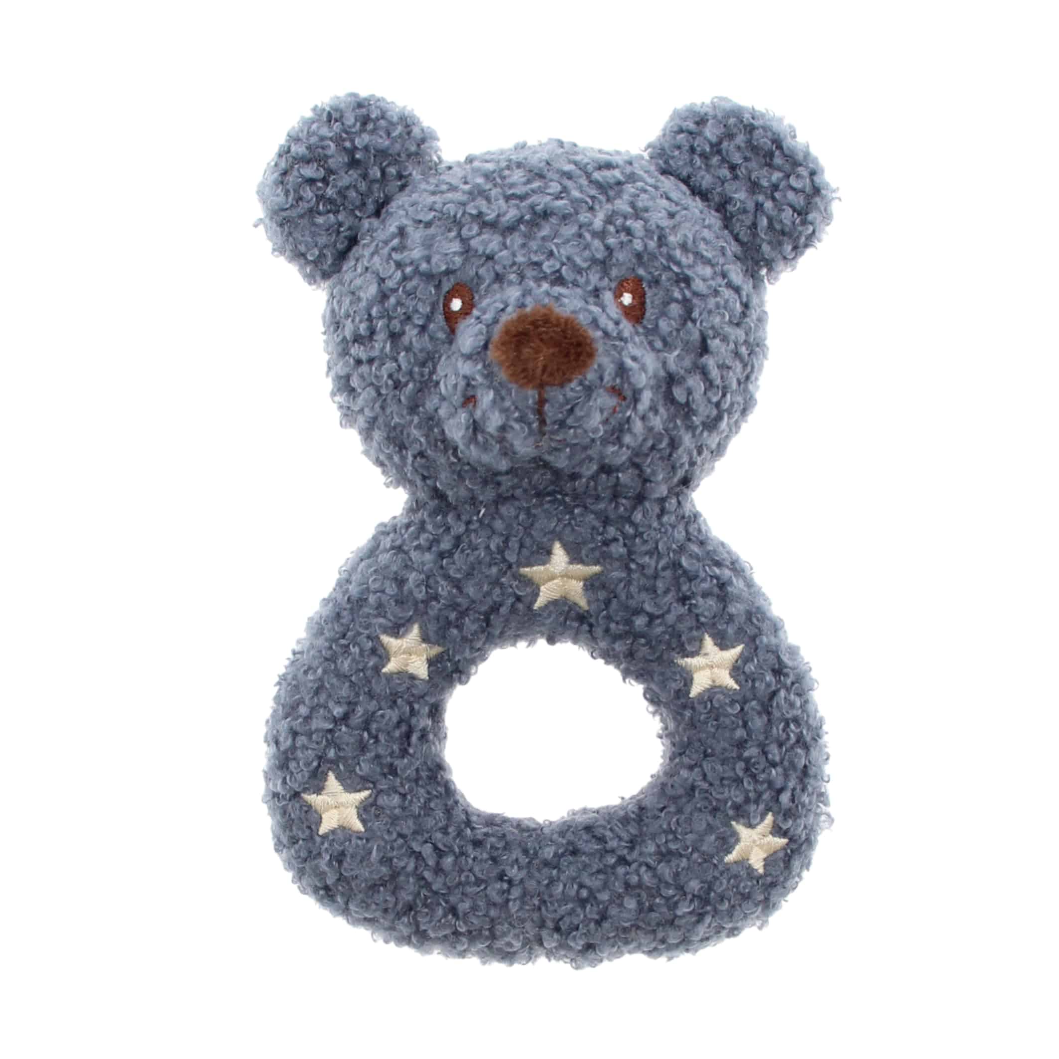 Pluche beer rammelaar dusty blue – 22 cm