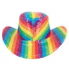 Hou je ook zo van pailletten en van cowboyhoeden? Deze vrolijke pailletten cowboyhoed in de kleuren van de regenboog past perfect binnen het Pride thema en is dan ook de ideale accessoire om een rainbow outfit helemaal compleet te maken. Deze vrolijke pride hoed is gemaakt van 50% eva, 25% pet, 25% polyester. Dit leuke model pride hoed is geschikt voor zowel mannen als vrouwen.