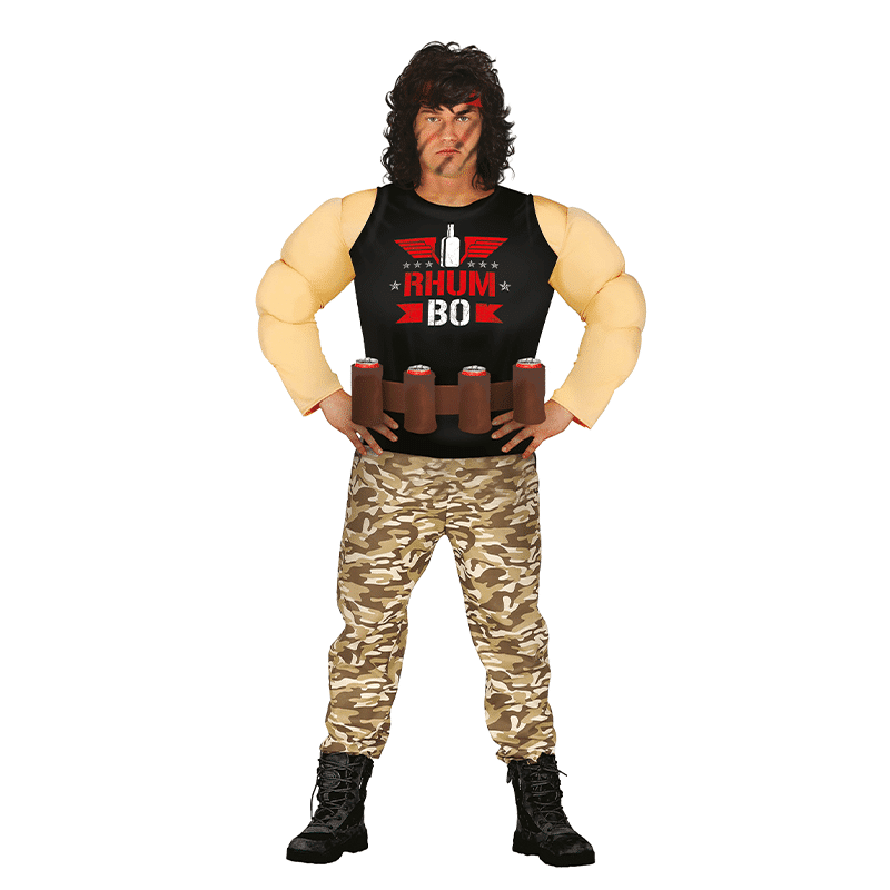 Een stoer kostuum voor een stoere vent. Dit Rhum Bo kostuum maat L (52-54) is gemaakt van polyester. Rhum Bo – maat L bestaat uit een shirt met een broek. De riem maakt je stoere survival outfit compleet, omdat je daar 4 blikjes drinken in kunt bewaren.