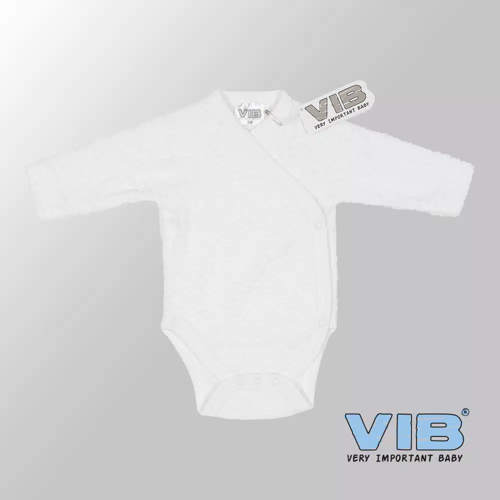 De VIB® overslagromper is verkrijgbaar in de maat 0-3 maanden (maat 56). Dat maakt deze romper tot de ideale babygift voor kersverse papa’s en mama’s.