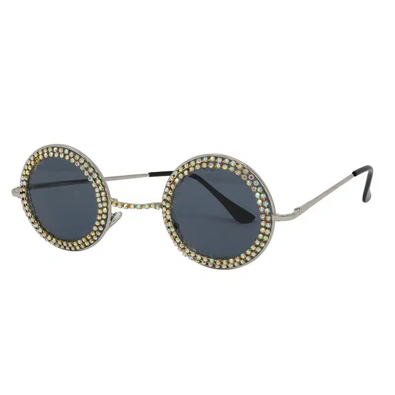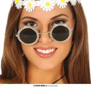 Deze brillen hebben een randje met zilveren diamantjes. Dat maat hem erg leuk voor tijdens een festival en voor carnaval.