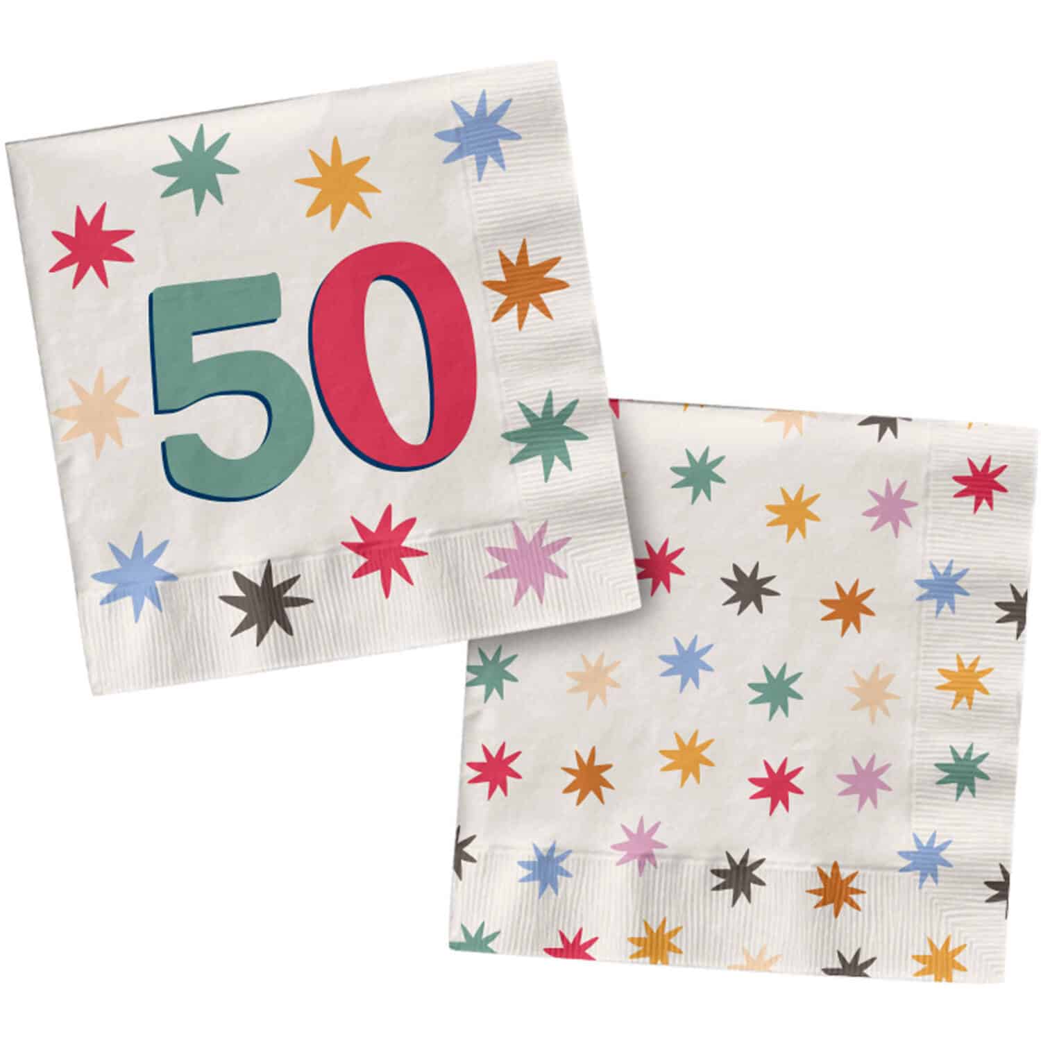 Maak je 50-jarig jubileumfeest compleet met de stijlvolle Servetten Starburst 50, een essentieel element voor een feestelijke tafelsetting. Deze servetten, met een prachtig ontwerp, voegen een vleugje elegantie toe aan elke viering. De servetten zijn verpakt per 20 stuks en zijn 33×33 cm.
