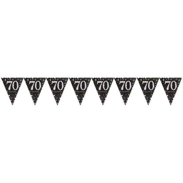 Met deze vlaggenlijn uit de lijn ‘Sparkling Celebrations’ maak je jouw decoratie compleet. De vlaggenlijn is goud en zilver van kleur en is 4 meter lang. Op de vlaggenlijn staat: ’70 Happy Birthday’. Deze vlaggenlijn is erg leuk om te combineren met onze andere producten uit de lijn van Sparkling Celebrations!