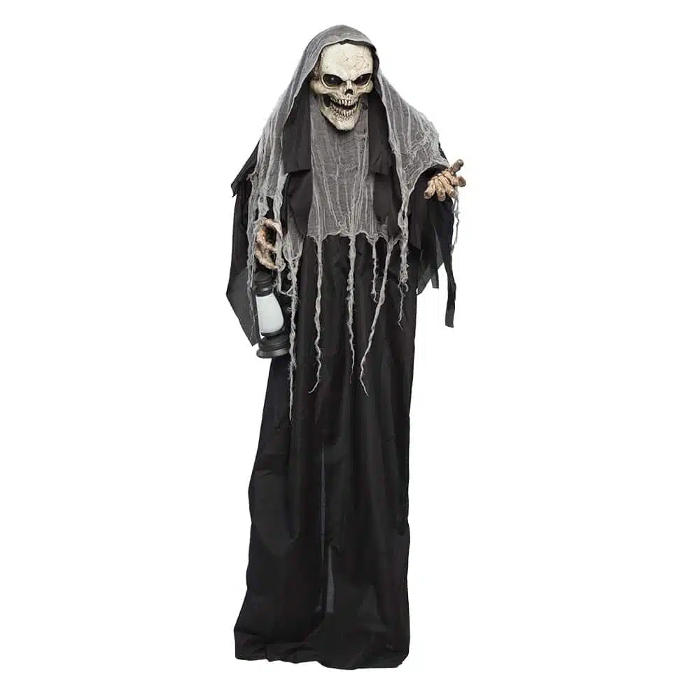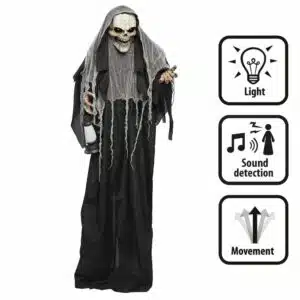 Deze griezelige reaper probeert tijdens Halloween nieuwe zieltjes naar zich toe te lokken met zijn lantaarn. Met zijn levensechte grootte, enge bewegingen, griezelige geluiden en rode oplichtende ogen zorgt hij in ieder geval voor kippenvel. Een mooie interactieve decoratie voor Halloween of een spookhuis.