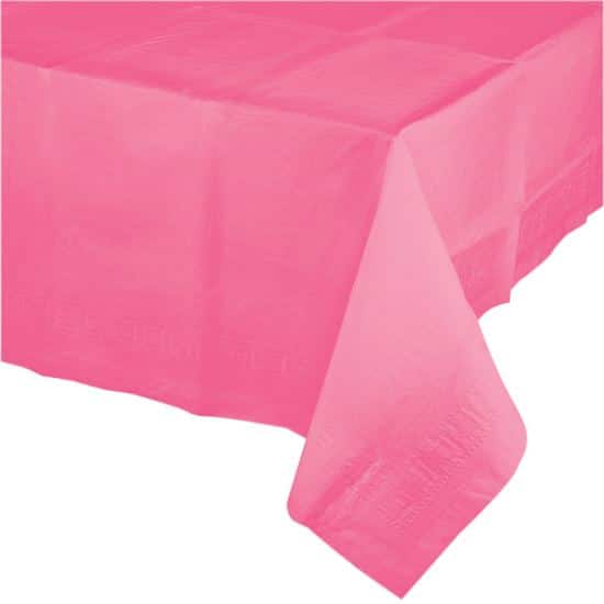 Papieren tafelkleed in de kleur candy pink. Het kleed heeft een uitgevouwen maat van 137x274cm.