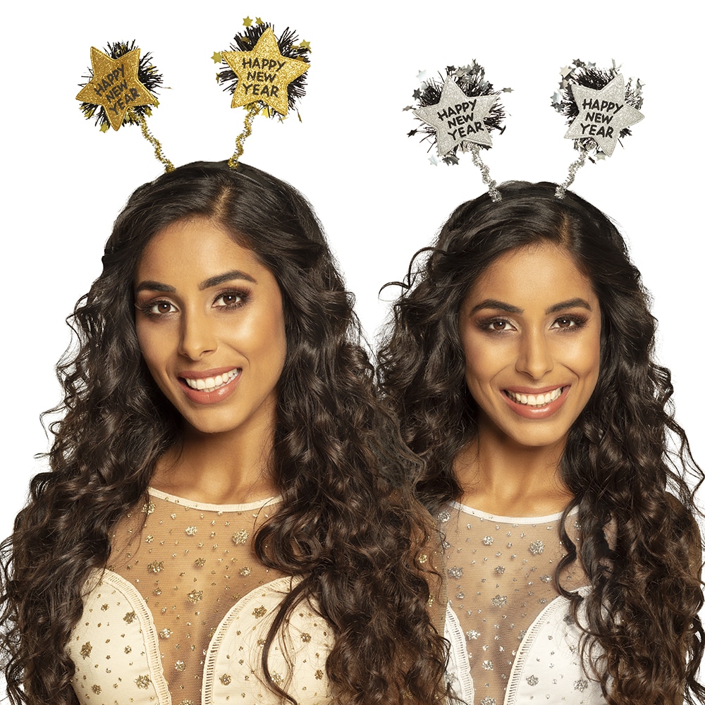 Deze leuke tiara’s geven het laatste touch aan je outfit voor tijdens de jaarwisseling. De tiara’s zijn goud en zilver met zwart en heeft de tekst ‘Happy New Year’. De tiara’s zijn in 1 maat en per 2 stuks verpakt.
