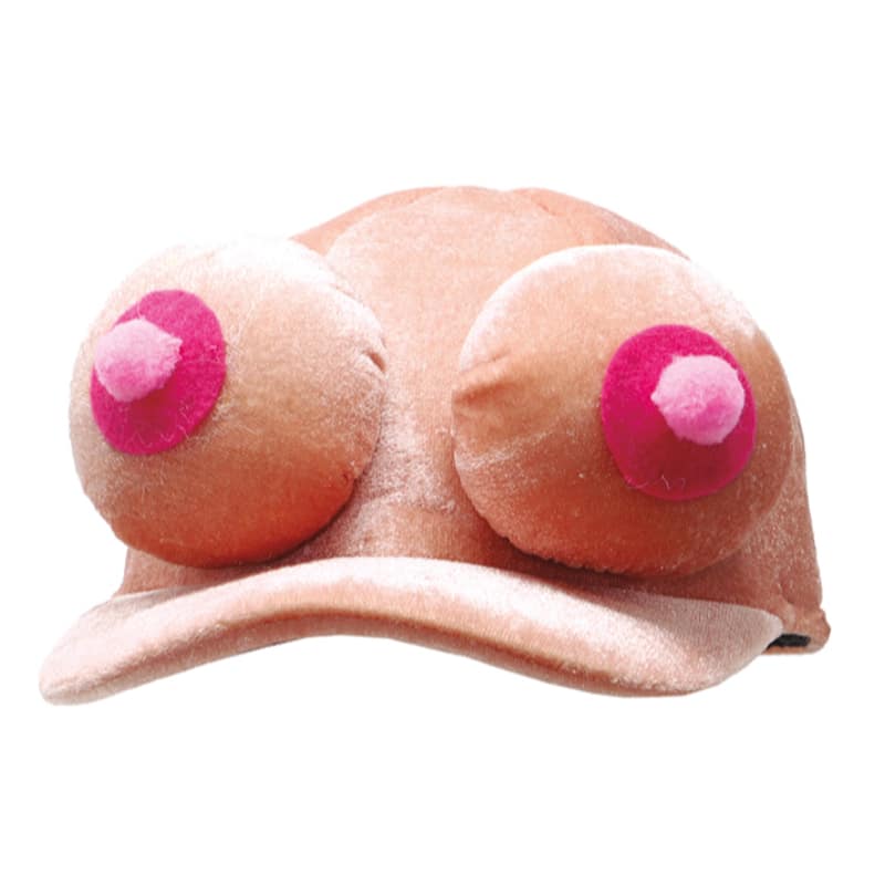 Een pet met borsten, leuk voor een vrijgezellenfeest.