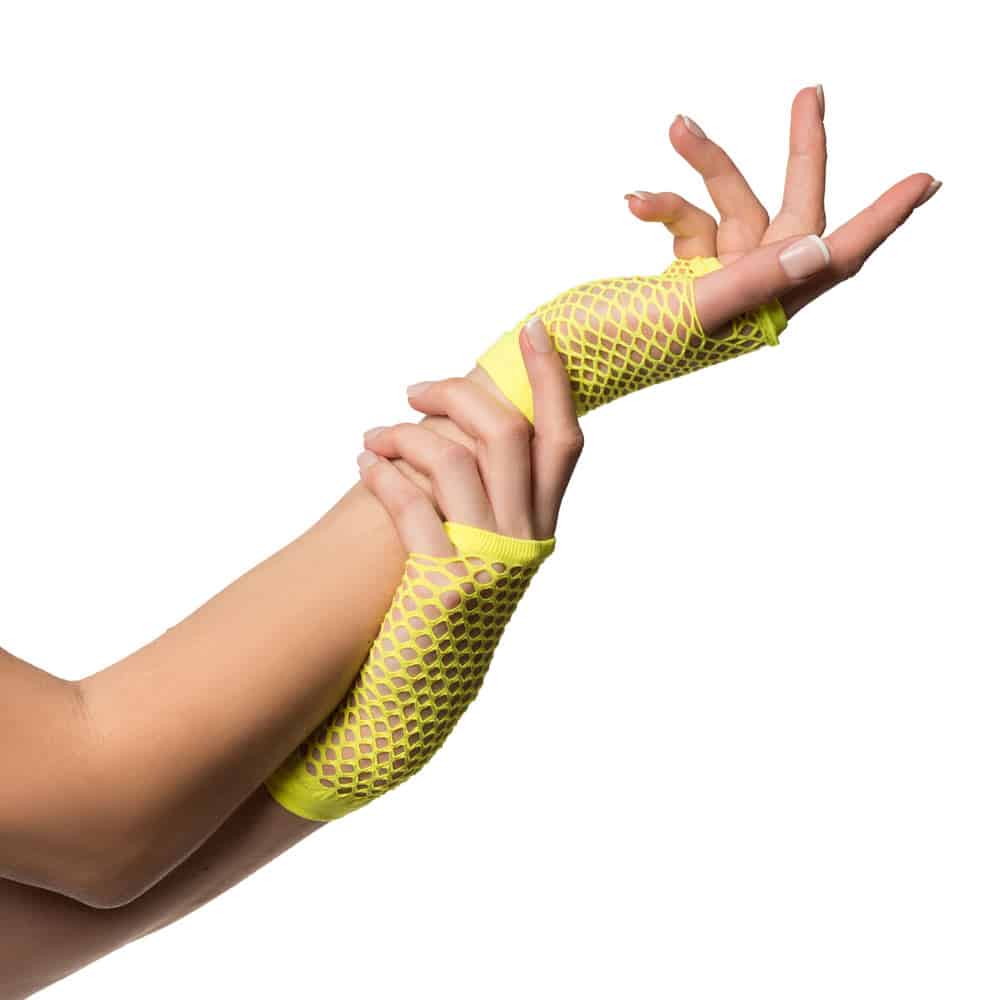 Vingerloze visnet handschoenen NEON Geel (per paar)