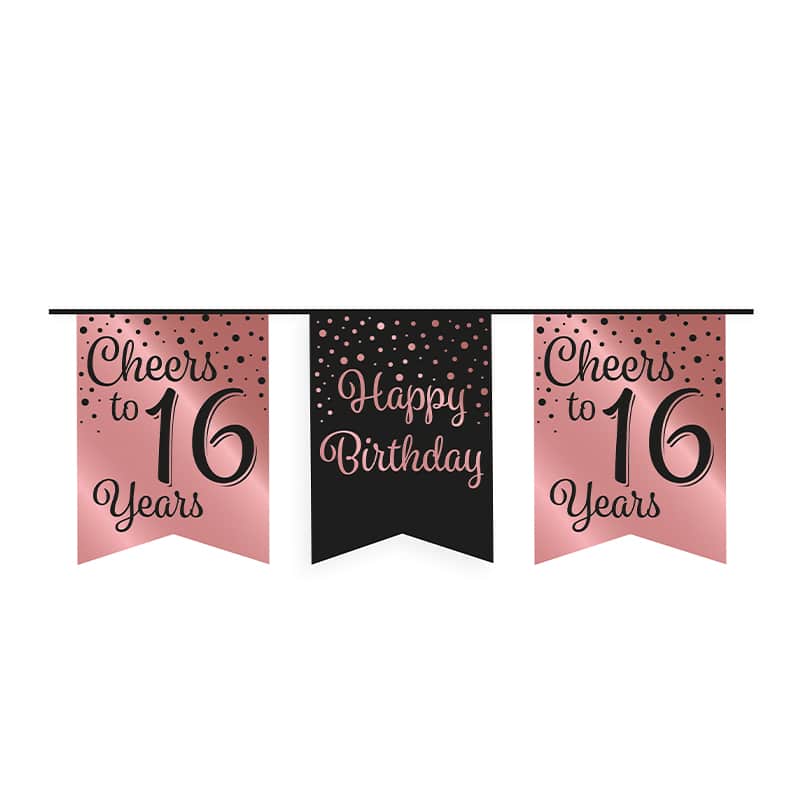 Vlaggenlijn Cheers Rose Gold / Zwart 16 jaar