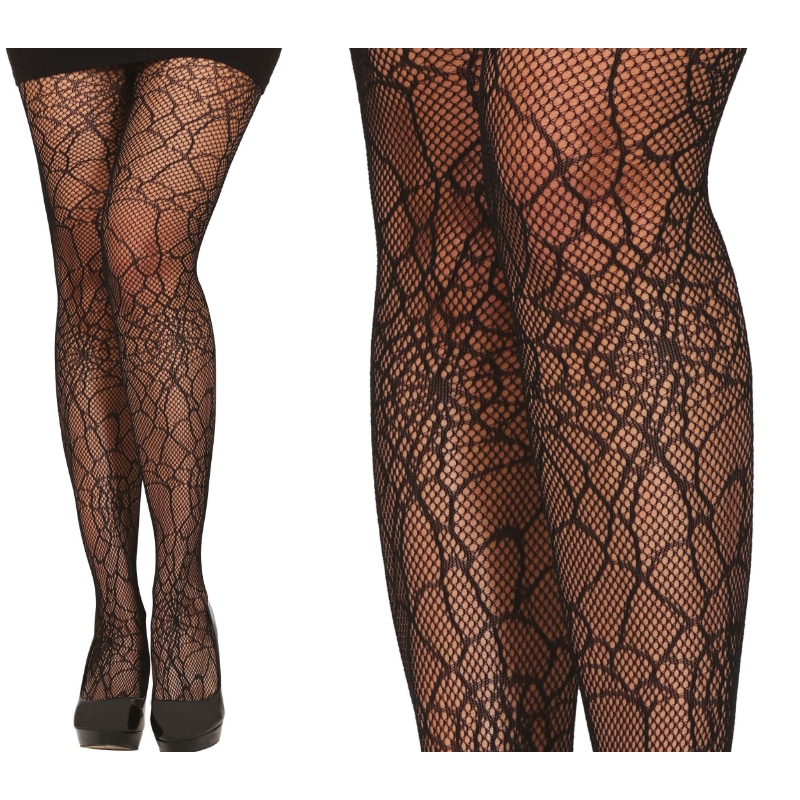 Deze volwassen netpanty spinnenweb is zwart van kleur en gemaakt van een rekbare stof. De maat is one size – dit suggereert dat iedereen het aan zou kunnen – echter is deze maat helaas niet voor iedereen geschikt, daar de panty een lengte van ongeveer 150 cm heeft. De panty is geschikt om te dragen onder een kostuum met Halloween, een themafeest of carnaval.
