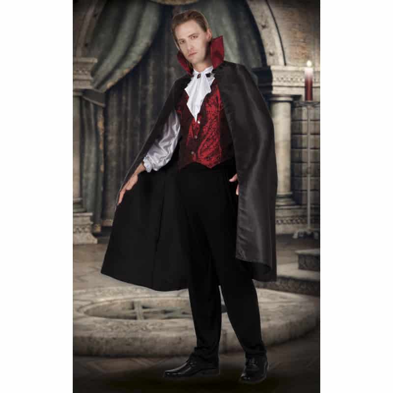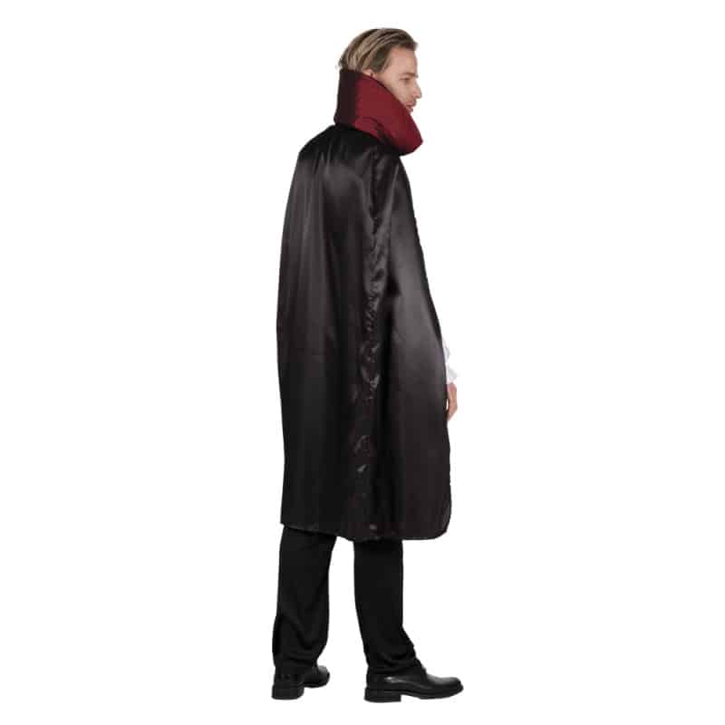 Verkleedkleding in een geweldig thema. Het kostuum bestaat uit een bovenstuk en een cape. Het bovenstuk is in de kleuren zwart en rood en heeft achter een klittenband sluiting. De mouwen en kraag zijn wit en de cape is zwart. De kleding is van goeie kwaliteit en zeker geschikt om meerdere malen te dragen. Twijfelt u over de maat? Bestel dan een maat groter. De kleding valt soms aan de kleine kant.