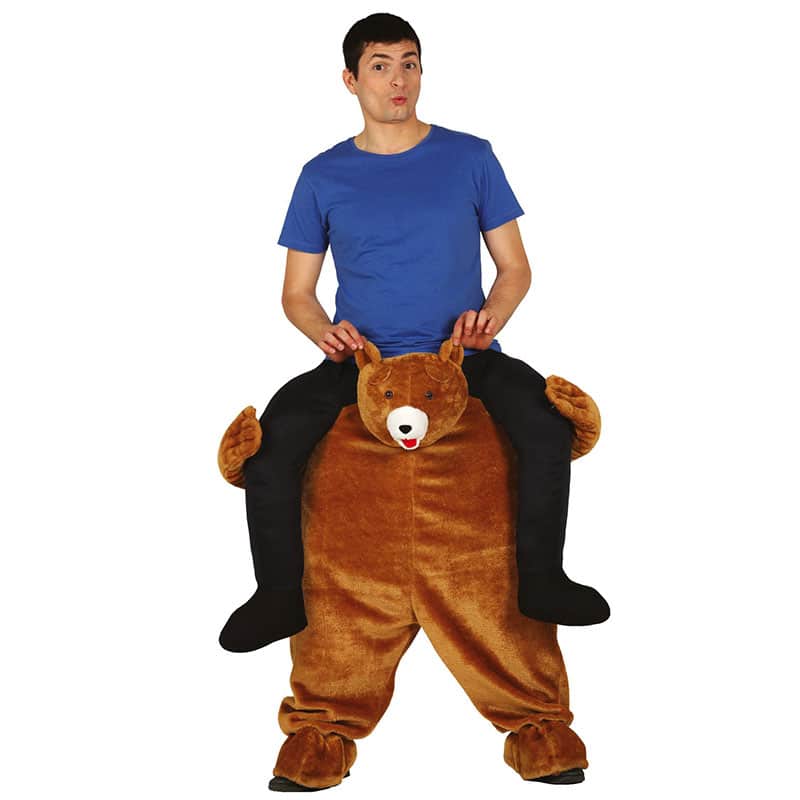 Dit toffe kostuum is alleen een broek. Wanneer je deze Volwassenenkostuum Op een beer aan hebt lijkt het alsof je op de schouders van een beer zit. Iedereen zal zich door de benen die over de schouders van de beer hangen af vragen of je nu op een echte beer zit of niet. Het kostuum is gemaakt van polyester. Deze Let me Go beer is maat L (52-54), maar kijk even naar de maten van de broek, want het kan kleiner vallen.