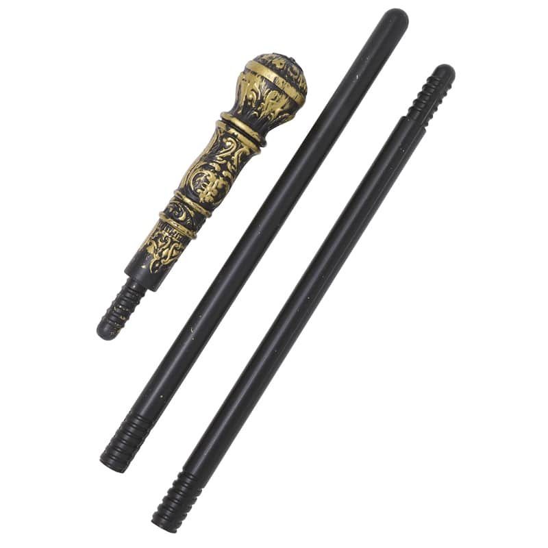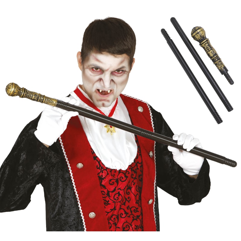 Deze stoere wandelstok Lord is demontabel en heeft een lengte van 80 cm. De wandelstok wordt in 3 delen geleverd, twee zwarte delen en het derde deel is de bovenkant deze heeft een ronde knop met goudkleurige accenten van ongeveer 5 cm breed. Ideale accessoire om je Halloween outfit als een griezelige heer compleet te maken.