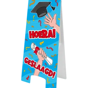 Onze warning signs zijn erg leuk om tijdens een (thema) feestje voor de deur of in een zaal te zetten, zodat iedereen weet dat er een feestje is! Deze warning sign met Geslaagd (cartoon) is gemaakt van stevig karton en heeft een afmeting van 58 x 24 centimeter.